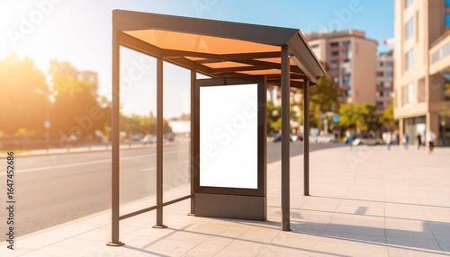 Bus stop with blank billboard sunny urban scene advertising opportunity high quality professional