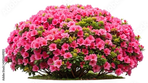Bush of Vibrant Pink Azalea Flowers Blooming in Spring, Isolated on White