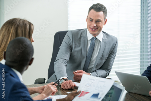 business, person, office, adult, people, businessman, male, occupation, men at work, man, communication, ethnicity, multi-ethnic, collar, sitting, discussion, planning, professional, head, meeting, white, partnership, strategy, young, african, black, smiling, mature, caucasian, working, leadership, conference, lifestyle, table, partner