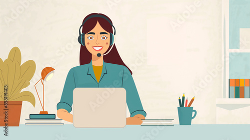 Business animation concept. Animation of female employee working in customer relations service. Public relations worker. Call service