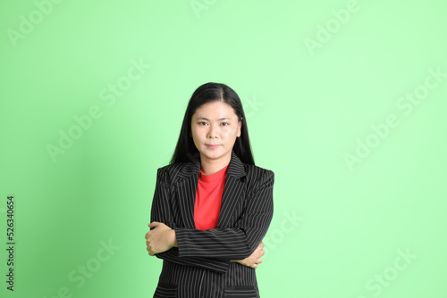 person, woman, business, portrait, asian, businesswoman, female, adult, young, isolated, professional, cheerful, lady, happy, corporate, background, attractive, chinese, beautiful, smile, confident, standing, suit, colours, green, confidence, smart, joy, arm, crossed
