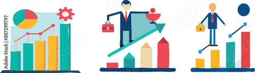 business, chart, information, report, management, performance, measure, quality, benchmark, product, result, best, financial, compare, leader, indicator, illustration, target, improvement, analysis, work, comparison, vector, flat, character, concept, finance, strategy, blue