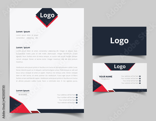 Business card and letterhead design set. Corporate and business style template. Modern and clean branding stationery design. fully editable file