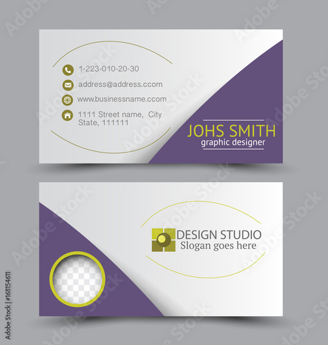 Business card design set template for company corporate style. Purple and yellow color. Vector illustration.