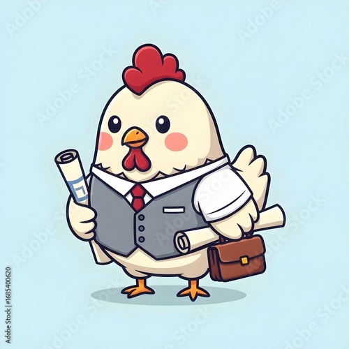 chicken, hen, rooster, business, businessman, office, professional, corporate, men at work, job, career, document, brief, briefcase, portfolio, suit, attaching, vest, cute, funny, cartoon, character, vector, illustration, flat, design, simple, animal, bird, pet, animated, digital artwork, graphic, occupation, entrepreneur, meeting, presentation, finance, isolated, mascot, smart, success, art
