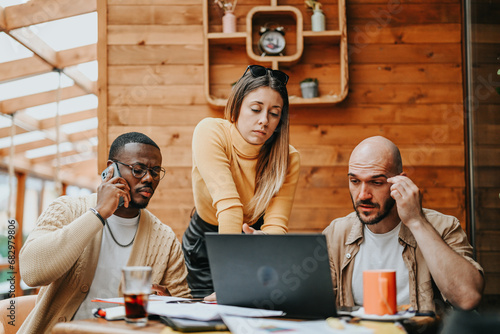 Business Collaboration: Multiracial Team Brainstorming in Urban Cafe