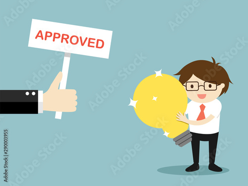 Business concept, Hand approved to businessman's idea. Vector illustration.