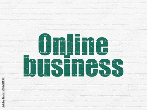 Business concept: Painted green text Online Business on White Brick wall background