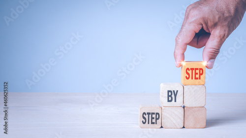 Business development to success and growing growth concept.Arrange wooden blocks into growing step by step.