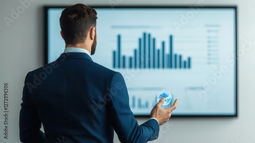 businesswoman, back, presenting, business, executive, strategic, plan, presentation, hologram, leadership, management, technology, innovation, solution, development, alignment, idea, influence, success, technique, corporate, impact, engagement, performance, vision, overview, remote, forecast, transformation, effectiveness, teamwork, clarity, datum