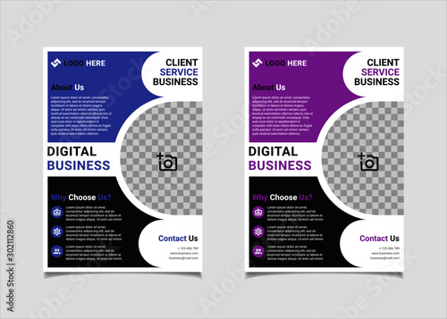 Business flyer template vector design, A4 brochure template blue and purple geometry shapes used for business poster layout, IT Company flyer, corporate banners, and leaflets