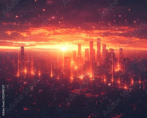 business, growth, concept, skyline, city landscape, sunrise, skyscraper, architecture, urban, modern, futuristic, development, building, light, glowing, illumination, radiant, dynamic, technology, progress, innovation, finance, prosperity, economy, industry, energy, financial, commerce, infrastructure, engineering, design, automation, networking, datum, connectivity, enterprise, investment, strategy, success, leadership, productivity, competitive, global, expansion, transformation, digital, trend, future, vision
