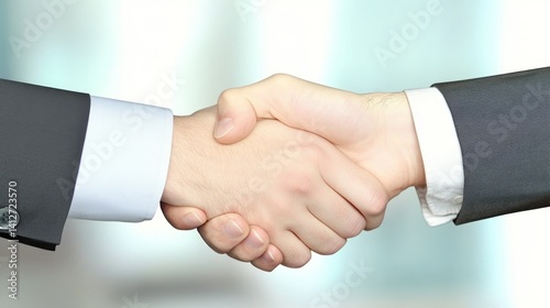 Business handshake symbolizing partnership, blurred modern office setting, ample copy space for text, professional atmosphere