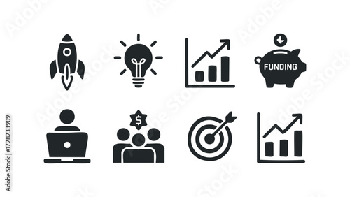 rocket, idea, growth, funding, laptop, teamwork, target, finance, success, investment, startup, progress, business, strategy, money, profit, concept, diagram, communication, development, opportunity, goal, innovation, plan, achievement