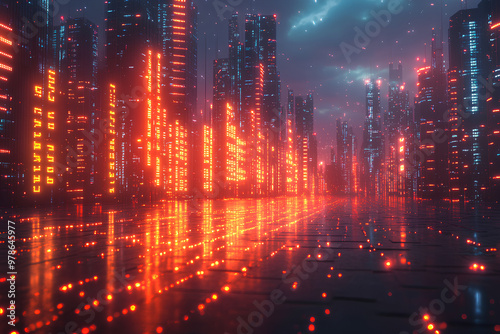 Business impact, holographic price drop, futuristic financial collapse, neon visualization