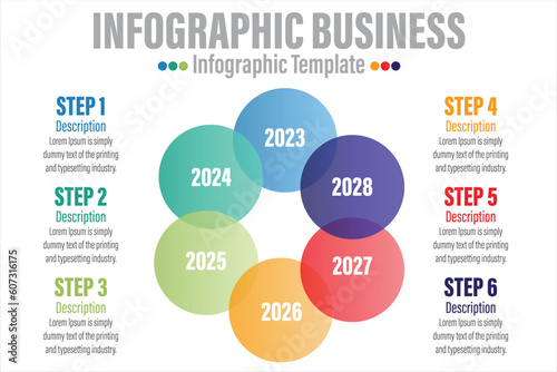 Business infographic design template with six 6 steps, six 6 options, steps or processes. Can be used for workflow layout, diagram, annual report, web design