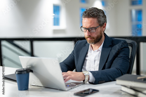 Business man entrepreneur startup owner in modern office. Occupation person in work space. Business portrait. Confident business worker. Business, finance and employment. Successful office worker.