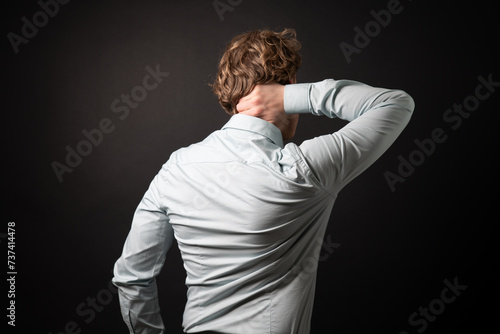 neck, back, pain, discomfort, physical injury, one man only, uncomfortable, business, well-dressed, problem, standing, painful, disease, indoor, male, person, man, adult, blue, one person, shirt, ache, cramp, massaging, mature adult, businessman, backache, 30s, application, attire, corporate, entrepreneur, injury, lifestyle, irritation, suffer, stress, young adult, body, acute, symptom