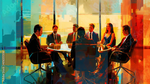 business meeting as abstract impressionist art