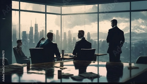Business meeting in sky scraper celebrating, concept art, AI Generated