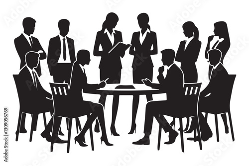 business, meeting, silhouette, vector, illustration, teamwork, group, corporate, office, people, management, table, discussion, collaboration, strategy, marketing, presentation, website, graphic, design, conference, leader, employee, staff, work, professional, communication, negotiation, success, planning, project, deadline, finance, career, job, contract, agreements, partnership, solution