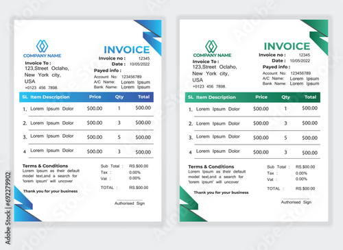 Business Minimal Corporate Invoice design template vector illustration bill form price . Creative template and stationery design payment agreement design template