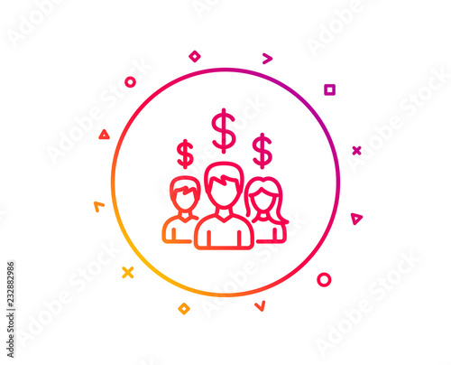 Business networking line icon. Group of people with Dollar signs. Gradient pattern line button. Salary employees icon design. Geometric shapes. Vector