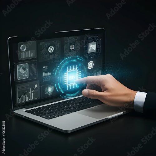 Business of the future concept showcasing artificial intelligence and blockchain with a focus on sleek design