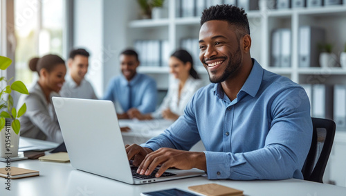 business, computer, office, laptop, team, people, businessman, meeting, working, businesswoman, work, teamwork, group, businessperson, smiling, sitting, looking, man, communication, corporate, desk, colleague, professional, confident, information technology