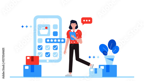 business owner tracking inventory with app flat vector illustration