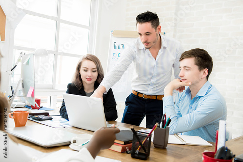 business, businessman, businesswoman, casual attire, caucasian, colleague, computer, consulting, creative, discussing, discussion, female, group, laptop, male, man, meeting, modern, notebook, office, people, point, team, teamwork, together, woman, working