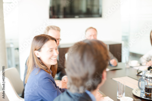 business, people, talk, meeting, adult, businessman, businesswoman, confident, copy space, co-worker, day, group, happy, head shot, indoor, listen, man, mature, mid, office, to sit, smile, racked, suit, teamwork, well-dressed, woman, young