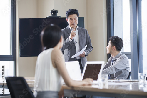 businessperson, chinese, asian, boardroom, meeting, talking, plan, business, leadership, manager, office worker, teamwork, team, communication, confidence, cooperation, file, laptop, meeting room, working, businessman, businesswoman, occupation, professional occupation, brainstorming, people, three people, missy, woman, female, man, male, asian ethnicity, adult, adults only, young adult, mature adult, partnership, strategy, success, togetherness, chair, computer, cyberspace, planning, table, technology, television, wireless technology, suit, attaching, well-dressed, skirt, day, indoor, office, window, mobility, holding, looking away, sitting, standing, gesticulate, pointing, china, east asia, asia, beijing, photo, color image, front view, waist up, selective focus, horizontal