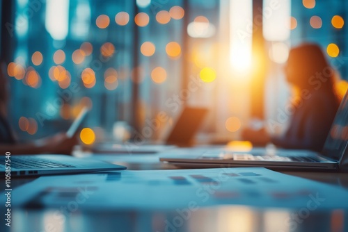 laptop, business, office, sunset, working, computer, desk, finance, meeting, analysis, bokeh, chart, graph, technology, teamwork, light, success, professional, evening, strategy, datum, window, corporate, collaboration, workplace, communication, marketing, growth, planning, executive, career, investment, management, blur
