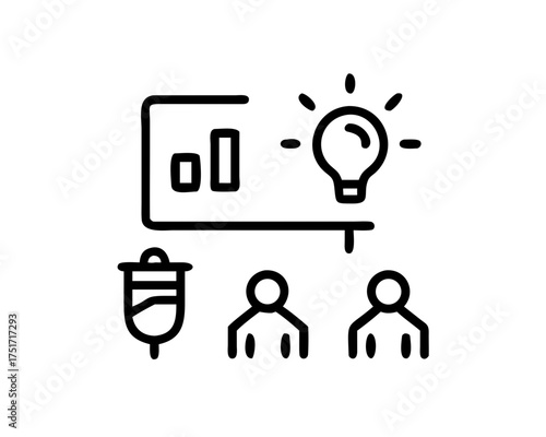 presentation, board, graph, bulb, idea, person, team, business, symbol, graphic, design, element, interface, website, application, user, outline, shape, signs, pictogram, creativity, strategy, management, marketing, finance, success, growth, solution, innovation, planning