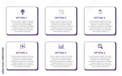 Business process visualization with 6 steps timeline diagram | Infographic data presentation with icon | Vector illustration suit for business, web, corporate, presentation with violet color