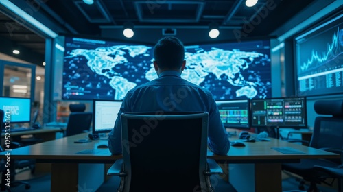 Business Professional Observing Global Data Insights in Control Room