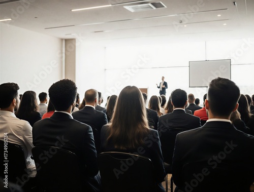 conference, speaker, audience, business, people, meeting, education, seminar, presentation, growth, group, training, crowd, event, lecture, learning, team, office, public, hall, screen, room, classroom, woman, rear, back