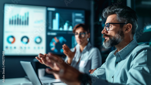 ai, generative, business, professional, meeting, office, discussion, strategy, datum, analysis, optical, technology, teamwork, presentation, graph, chart, collaboration, planning, communication, corporate, laptop, digital, statistic, information, brainstorming, project, idea, research, sharpened, concentration, workplace, modern, management, client, report, goal, performance, training, innovation, expertise, growth, productivity, efficiency, leadership, networking, development, result