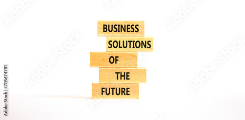 Business solutions of the future symbol. Concept words Business solutions of the future on wooden blocks. Beautiful white table white background. Business solutions of the future concept. Copy space.