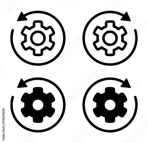 Business strategy, cog and rotating arrow icon