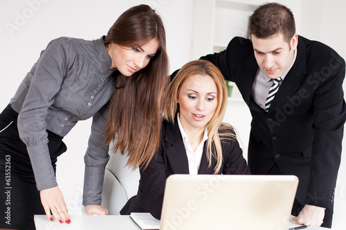 office, teamwork, discussion, laptop, working, colleague, talking, team, three people, meeting, business, businessperson, listening, sitting, standing, cooperation, occupation, partnership, businessman, businesswoman, indoor, showing, looking, explaining, presentation, professional occupation, manager, horizontal, people, missy, young men, woman, man