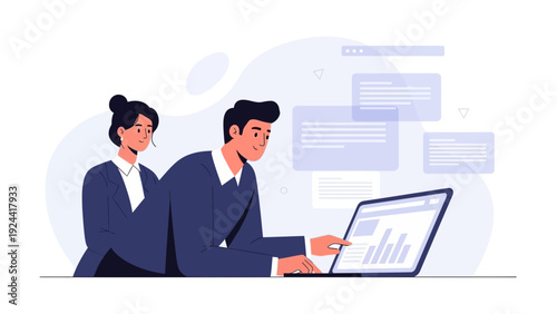business, meeting, teamwork, collaboration, office, work, datum, analysis, laptop, screen, professional, people, modern, working, together, illustration, corporate, environment, strategy, planning, digital, interface, project, management, online, communication, team, member, analysing, chart