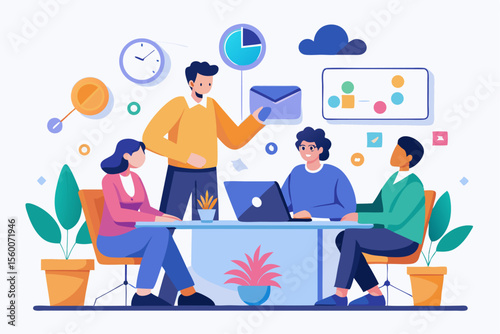 Business Team Meeting and Presentation – Modern Office Vector Illustration