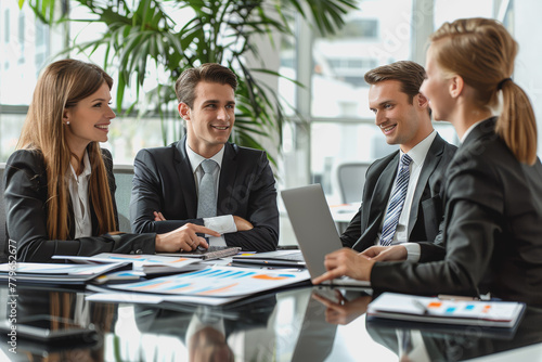 Business team meeting using computer laptop Work with charts and analyze business strategies.
