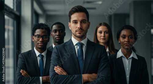 businessperson, team, business, suit, tie, man, woman, diversity, professional, serious, confident, group, office, hallway, corporate, daytime, daylight, modern, leadership, collaboration, arms crossed, oneness, success, entrepreneur, employee, colleague, meeting, teamwork, management, businessperson, professionalism, confidence, formal, dark, light, neutral, portrait, photographic, businesswoman, black, blue, people, businesswoman, businessman