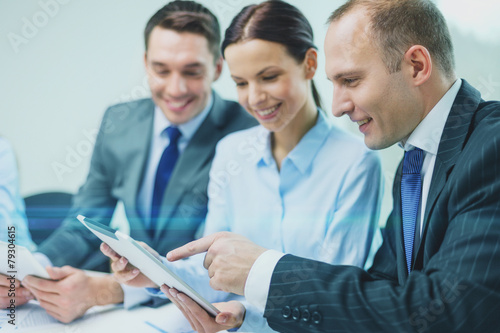 business, meeting, discussing, office, group, tablet, people, technology, teamwork, team, brainstorming, discussion, watching, looking, corporate, computer, smiling, planning, management, briefing, working, happy, colleague, men at work, young, woman, professional, man, businesswoman, businessman, cyberspace, online, pointing, finger, showing, indoor, concept, person, co-worker, partner, contraption, app, application, connection, browsing, communication, latin, hispanic