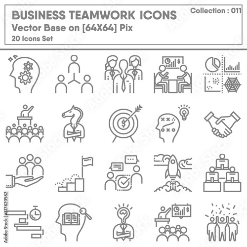 Business Teamwork and Leadership Icon Set, Icons Collection of Business Entrepreneur for Management Symbol. Leadership Team and Organization Human Resources, Vector Illustration Concept Design.