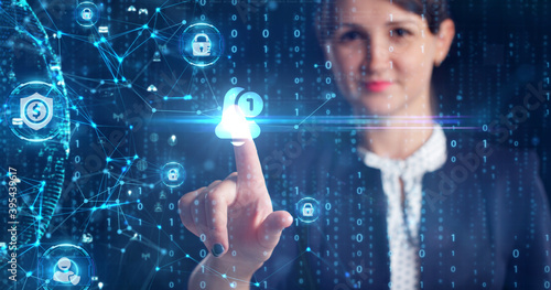 Business, Technology, Internet and network concept. Young businessman working on a virtual screen of the future and sees the inscription: