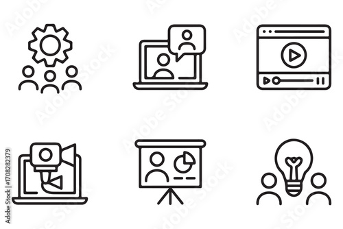 Business Training Icons Vector Set for Online Learning and Teamwork